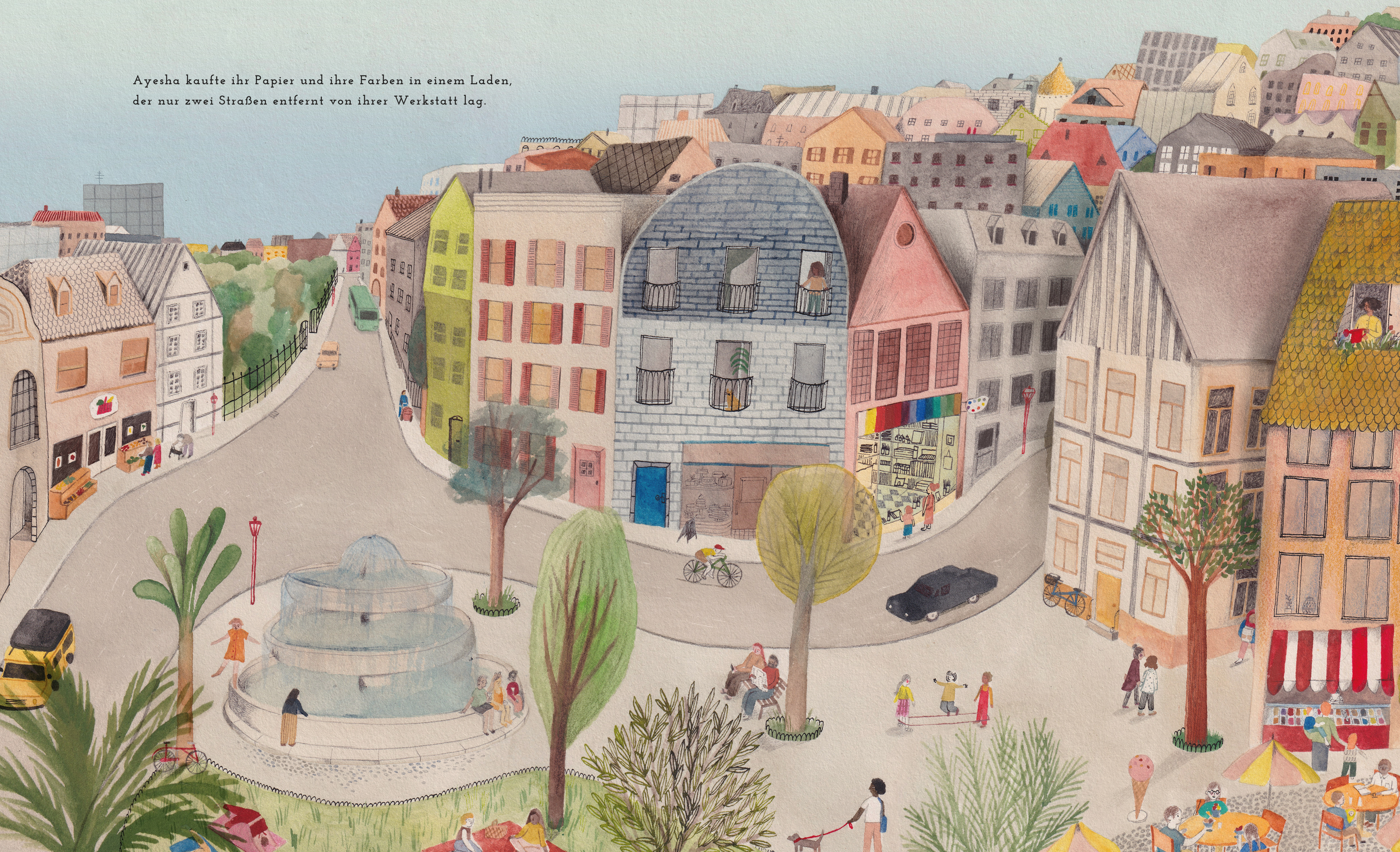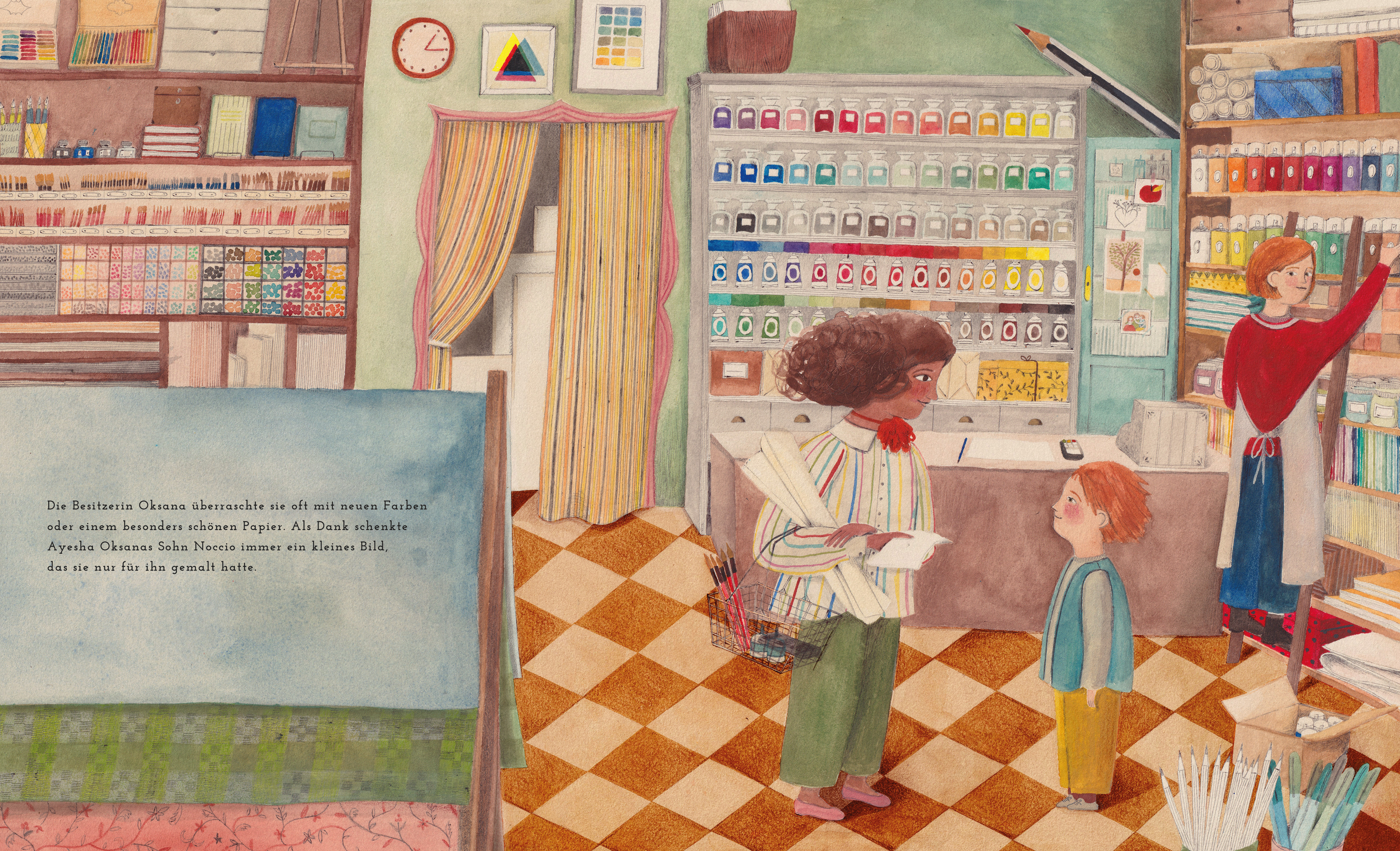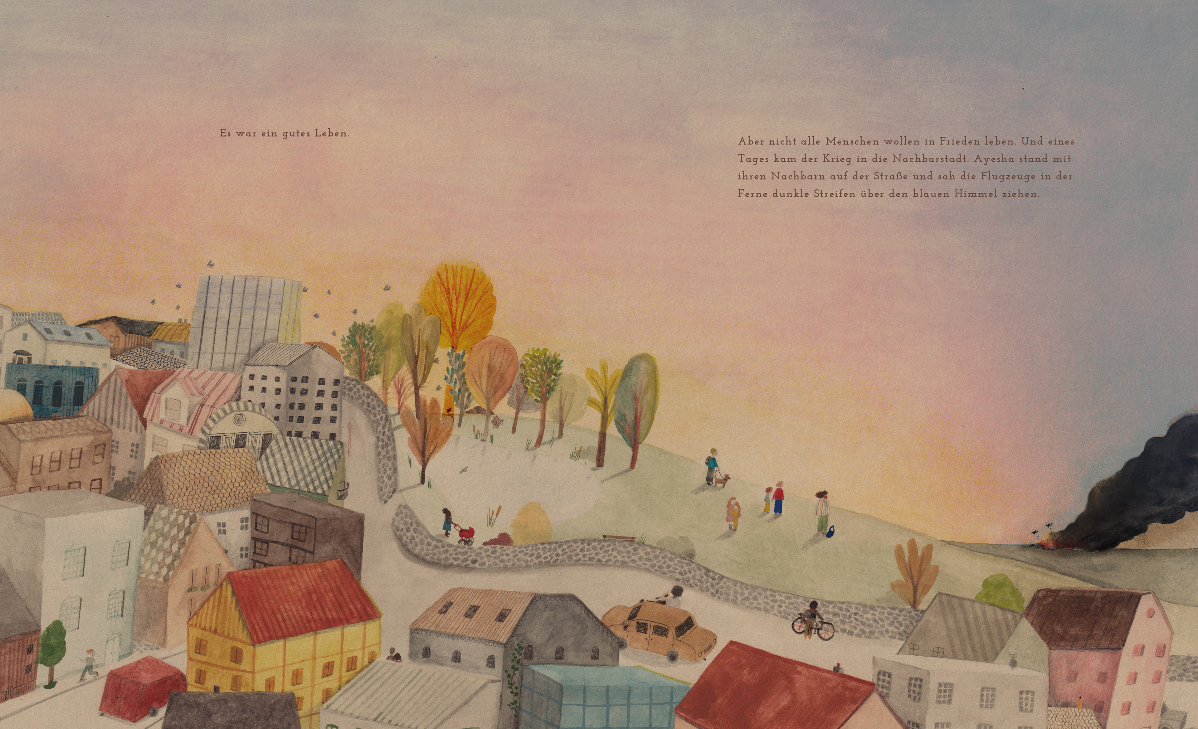 Ayesha malt wunderschöne Bilder: Sie erzählen von Liebe, Freundschaft und der Schönheit der Welt. Doch eines Tages kommt der Krieg in die Stadt. Der Keller von Ayeshas Werkstatt wird zum Schutzraum, in dem das Grau der Wände sich in die Herzen der Menschen schleicht. Bis der kleine Emil der Künstlerin einen Pinsel reicht und schließlich alle gemeinsam beginnen zu malen. Ihre Erinnerungen und das, was der Krieg ihnen bereits gestohlen hat. Bis das Grauen immer näher kommt und Ayesha einen Entschluss fasst: Sie beginnt, ein Fenster zu malen. Ein magisches Fenster, das Hoffnung verheißt.